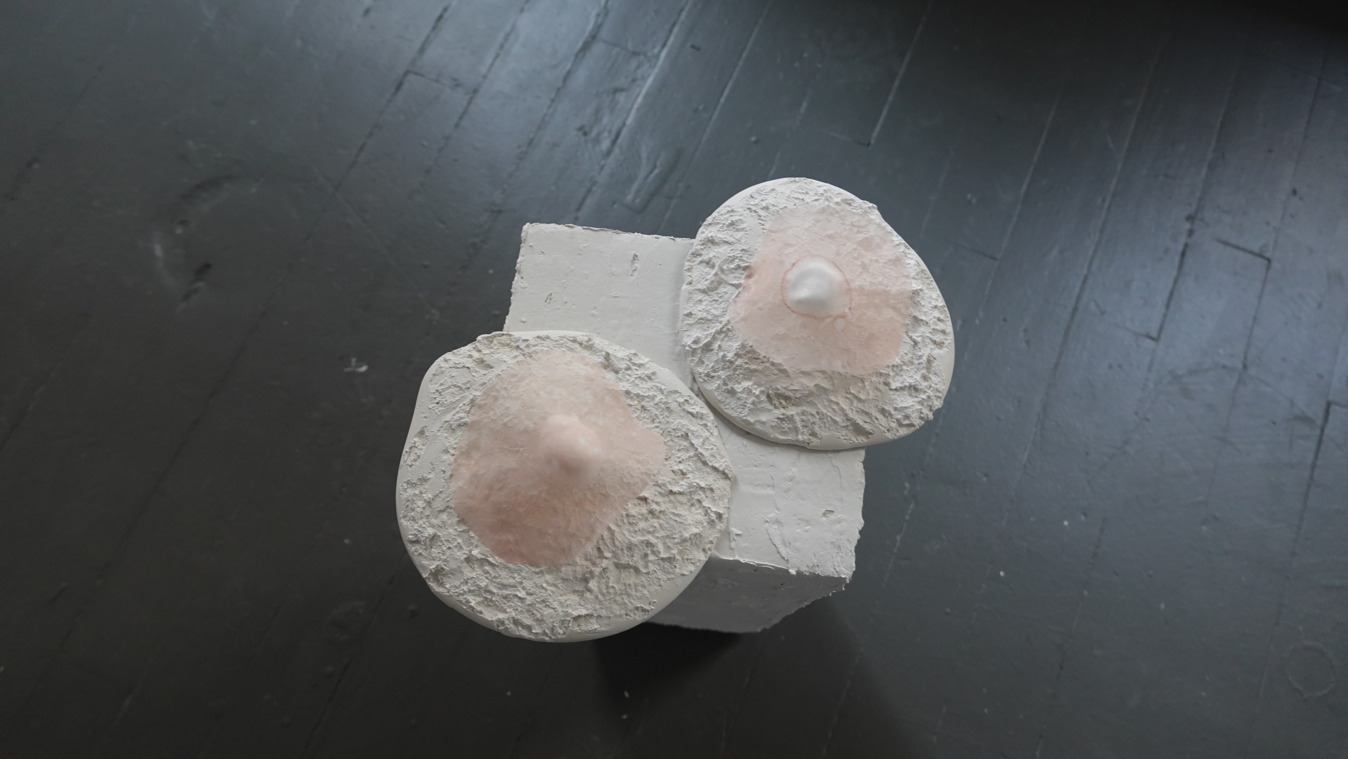 Untitled (I), 2021, joint compound, plaster, foam, photo printed on silk
